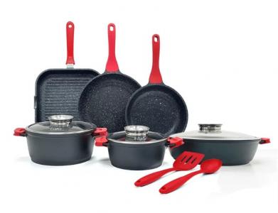 סדרת רוסו מסדרת CAPSTONE, הכלים מצופים שיש SOLID ROCK העמיד והחזק מכל ציפוי שיש אחר, ומונע הדבקות מזון.